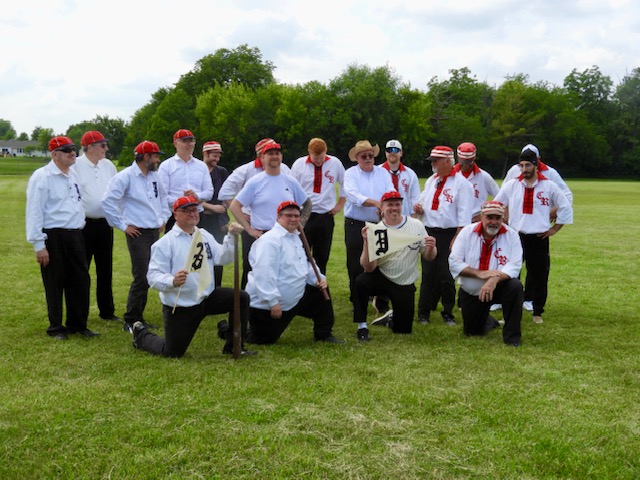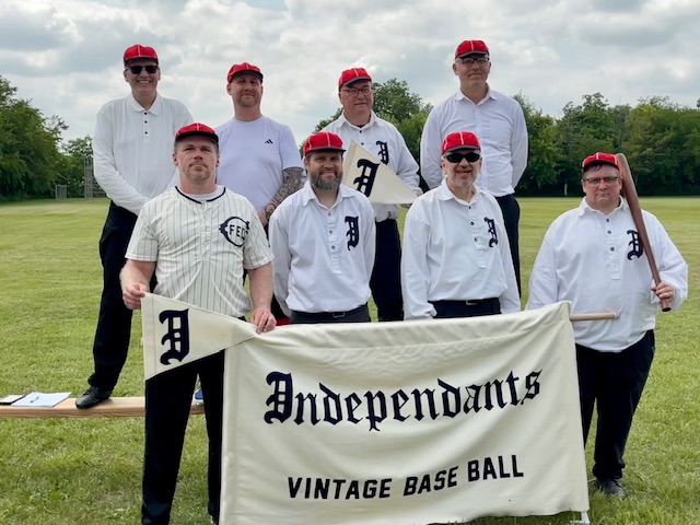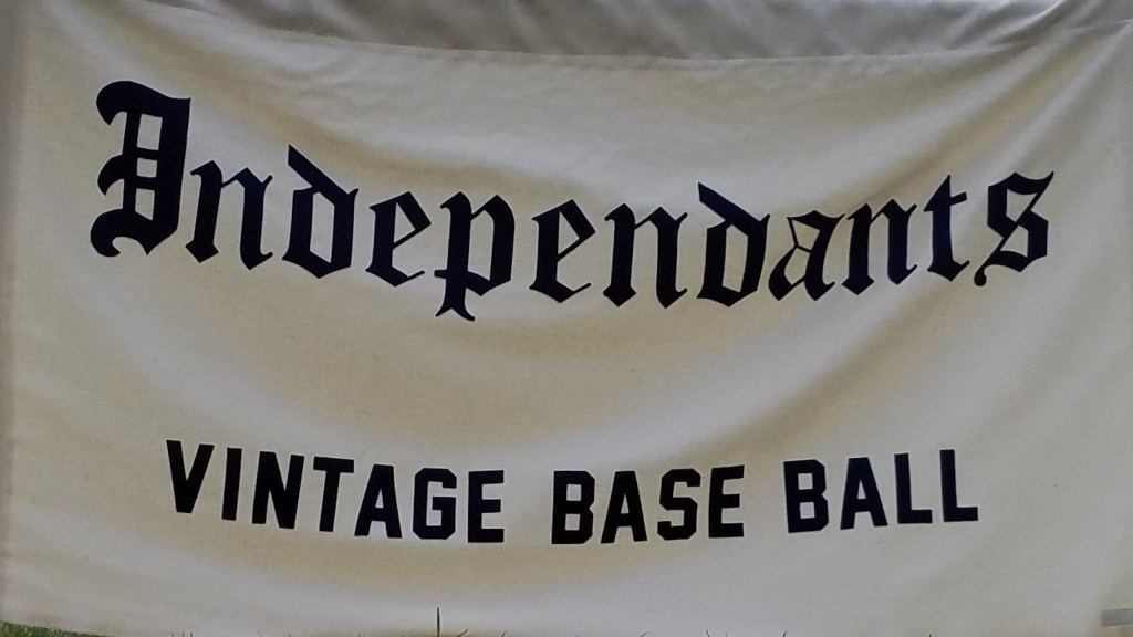It was Flag Day 2025 when the McHenry County Independants revealed their new team banner. The Independants traveled to Creston IL to take on the Creston Regulators. It was a beautiful day for base ball and the field was in great condition. It was a well played match by both teams but the Regulators edged out the Independants by a few runs. The day concluded with the home team providing a delicious meal of hotdogs, brats, pizza and more to everyone involved.